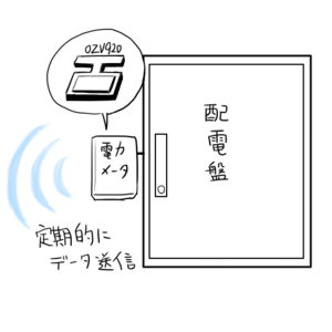 配電盤に電力メータを設置し、OZVからデータを定期的に送信し、遠隔地から消費電力の監視を行うデマンド監視システムを構築できます。